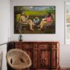 The original oil painting was created by Veru Narula in his studio and captured a fleeting moment. Each print is created at an Atelier in Los Angeles that actually is so pristine that it at times surpasses the amazing recessional effect of the original. Additionally, each print is unique because a textured gel applied by hand at the Atelier to the top waves to give a glistening effect. Ocean of Abundance Prints are superior products, and are wrap printed on the side and comes ready to hang with wire attached at the back. If you prefer a frame, that is available at check out and comes in White, Black and Oak Wood.