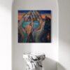 The original oil painting was created by Veru Narula in his studio and captured a fleeting moment. Each print is created at an Atelier in Los Angeles that actually is so pristine that it at times surpasses the amazing recessional effect of the original. Additionally, each print is unique because a textured gel applied by hand at the Atelier to the top waves to give a glistening effect. Ocean of Abundance Prints are superior products, and are wrap printed on the side and comes ready to hang with wire attached at the back. If you prefer a frame, that is available at check out and comes in White, Black and Oak Wood.