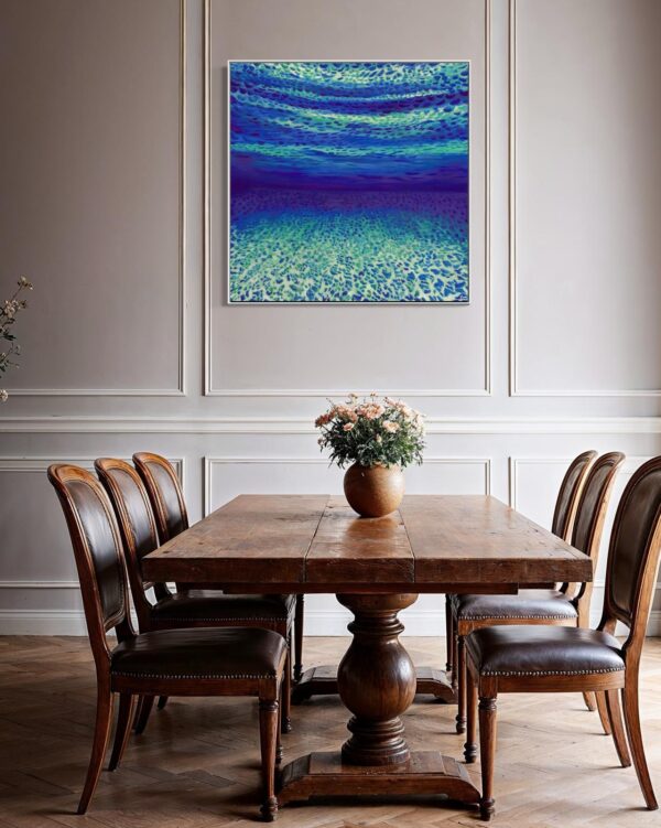 These rare, hand-painted ocean art pieces are intended to attract Abundance into your life. A meditative, underwater retreat from the daily grind that studies the effects of light, water and the ocean floor.